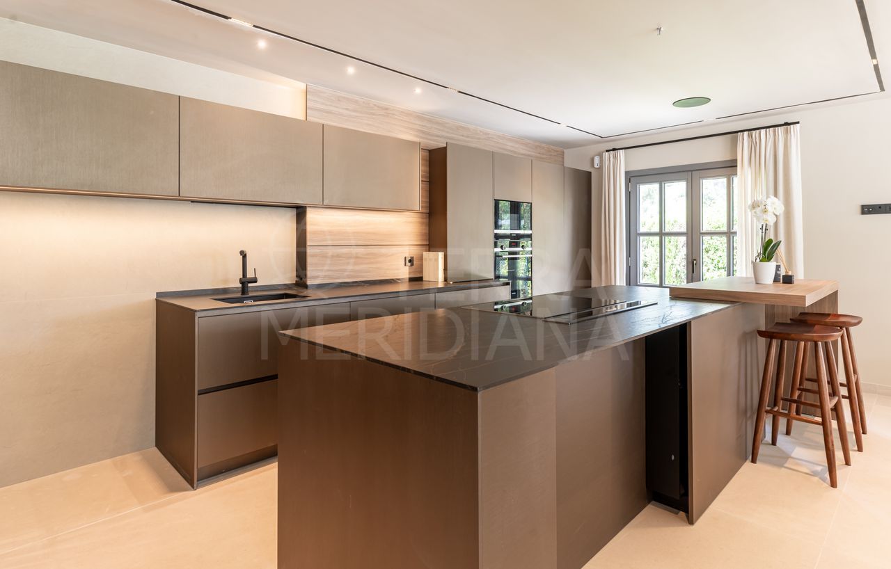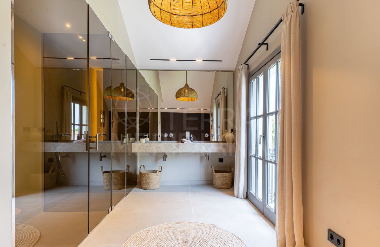 This elegant Andalusian style residence, recently renovated, combines classic charm with contemporary design. Located on a private plot of 1,843 m2, the property is surrounded by carefully designed gardens, mature trees and a swimming pool that becomes the axis of outer space.