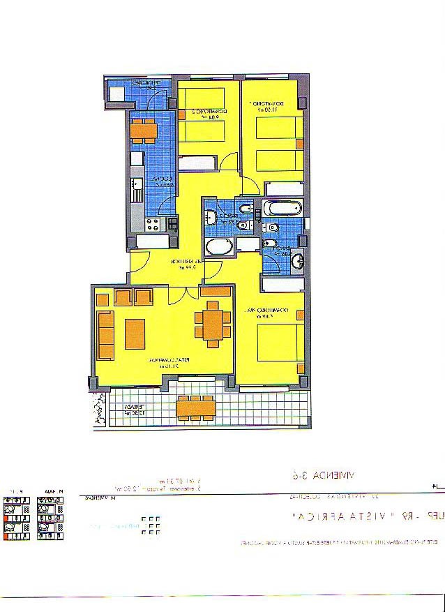 Upon entering, you’ll find the kitchen to the left, which connects to a practical laundry area. Continuing down the hallway are the guest bathroom and two bedrooms. Directly ahead is the main bedroom, featuring an en-suite bathroom. To the right, the bright living room also opens directly onto the terrace, perfect for enjoying the Mediterranean climate. For climate confort, the property comes equipped with air conditioning.