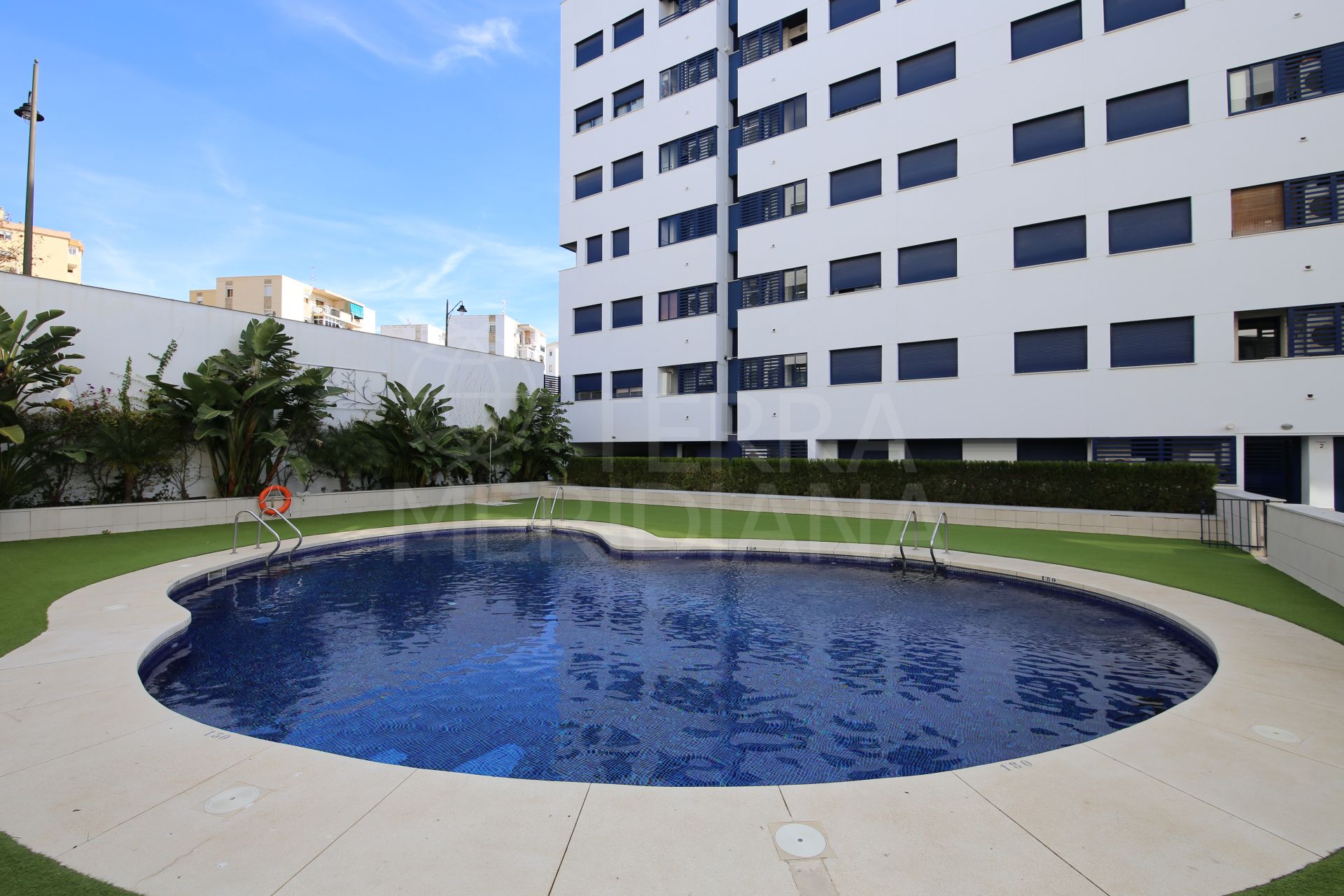 The community offers two swimming pools, a communal gym, and boasts an unbeatable location, close to all amenities. The sandy beaches and the lively marina are just a short stroll away, while the charming Old Town with its restaurants and bars is only a 10-minute walk. Several top-rated golf courses are within a 15-minute drive, and Málaga Airport is reachable in under an hour.