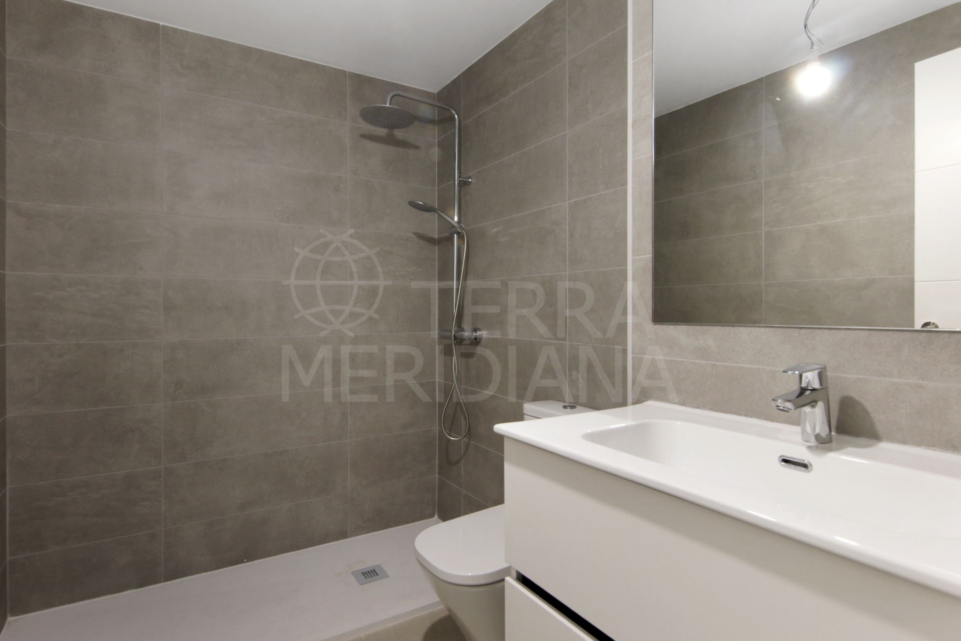 Upon entering, you are welcomed by an open-plan kitchen and living area that flows seamlessly onto a covered terrace overlooking the private garden—one of the largest in the community. To the left, you’ll find a full bathroom that serves as a guest toilet, followed by the first bedroom, and finally the master suite featuring its own private en-suite bathroom.