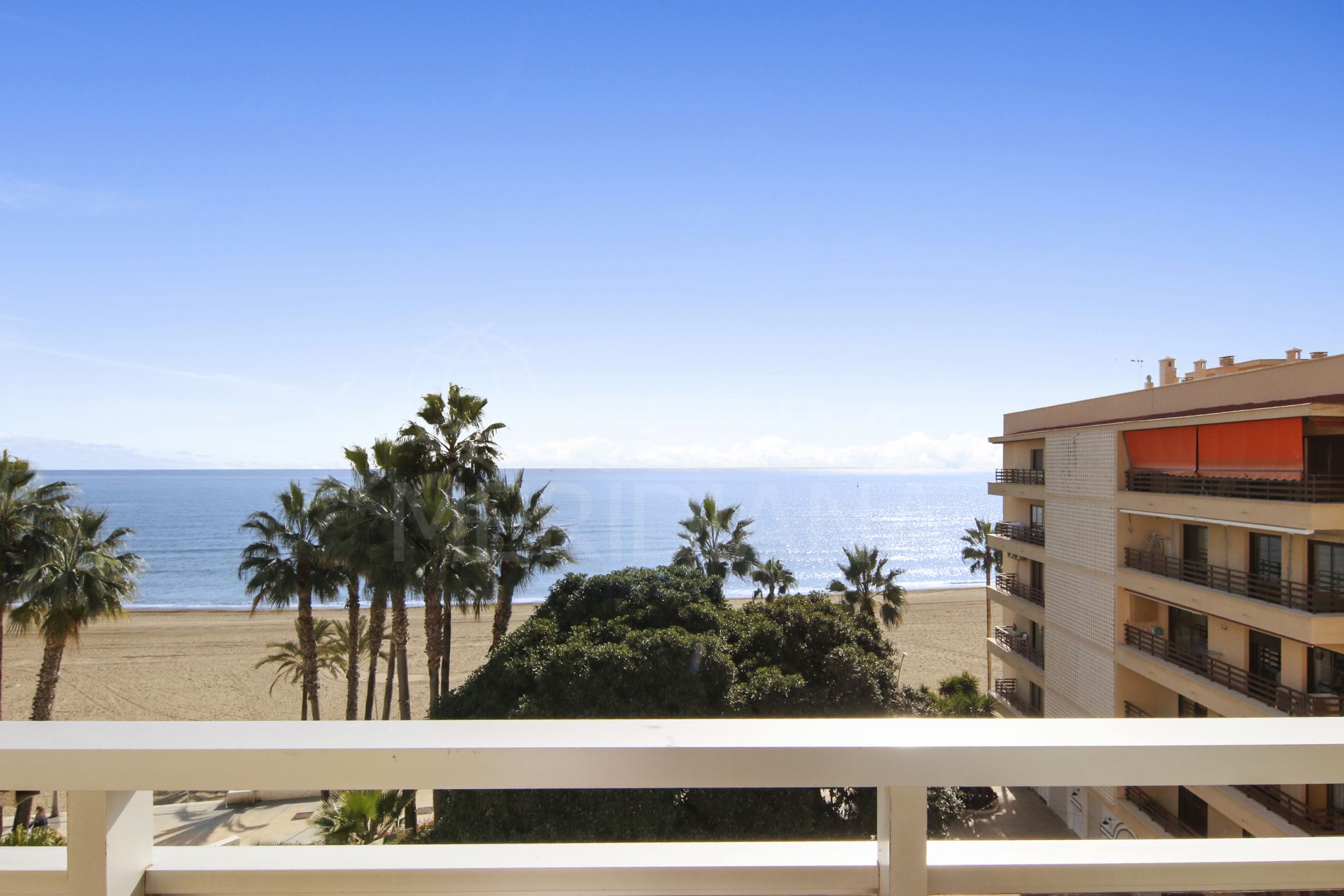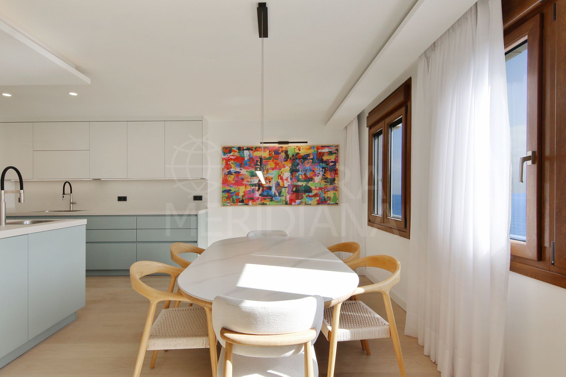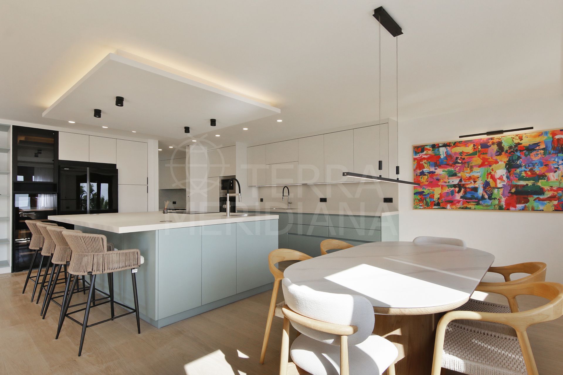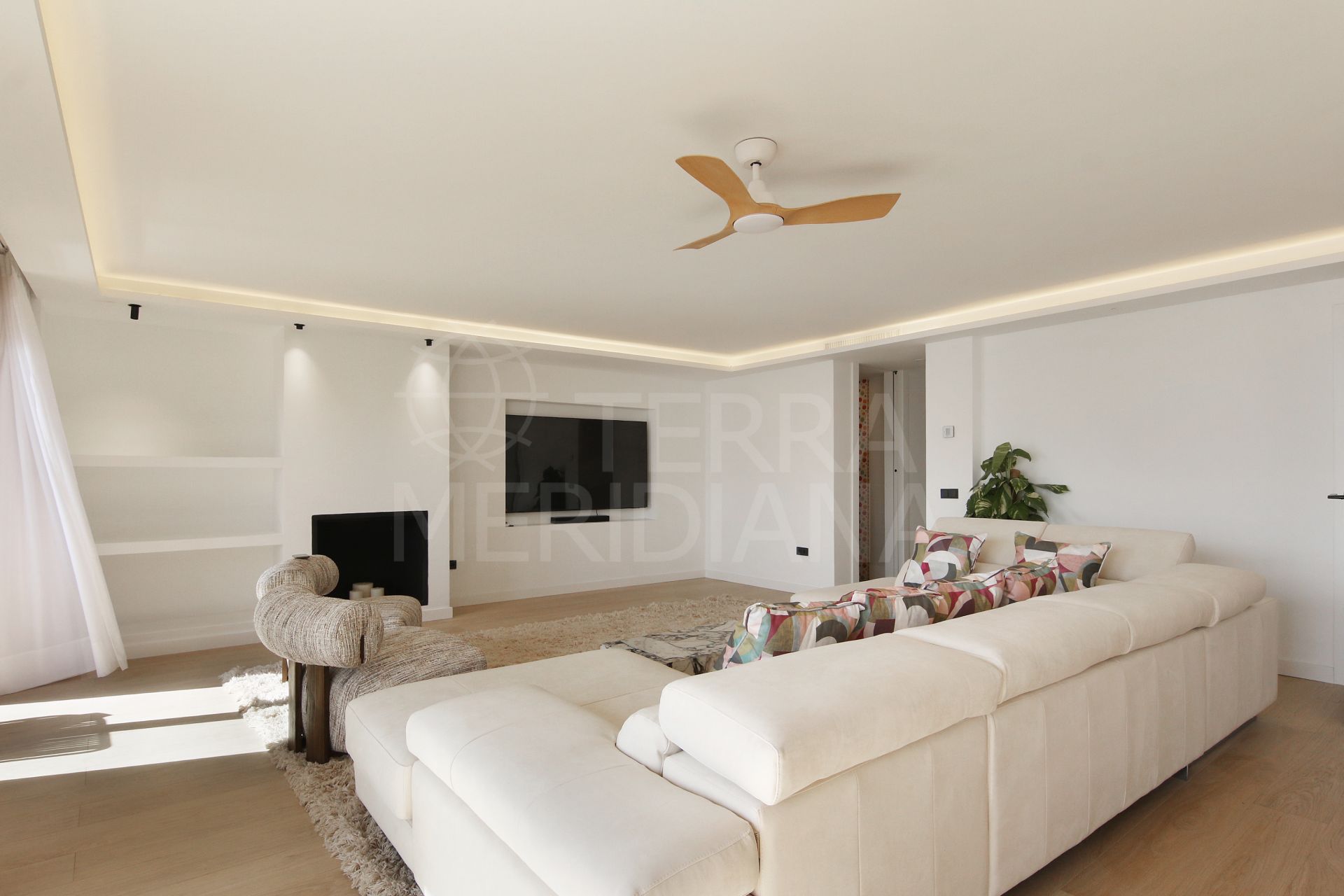 Commanding an unparalleled position directly on Estepona’s beachfront, this remarkable fifth-floor penthouse epitomizes coastal luxury and refined contemporary living. Recently reimagined through a complete, top-to-bottom renovation, the residence combines two apartments into one expansive sanctuary — offering a rare sense of space, sophistication, and seamless modern comfort.