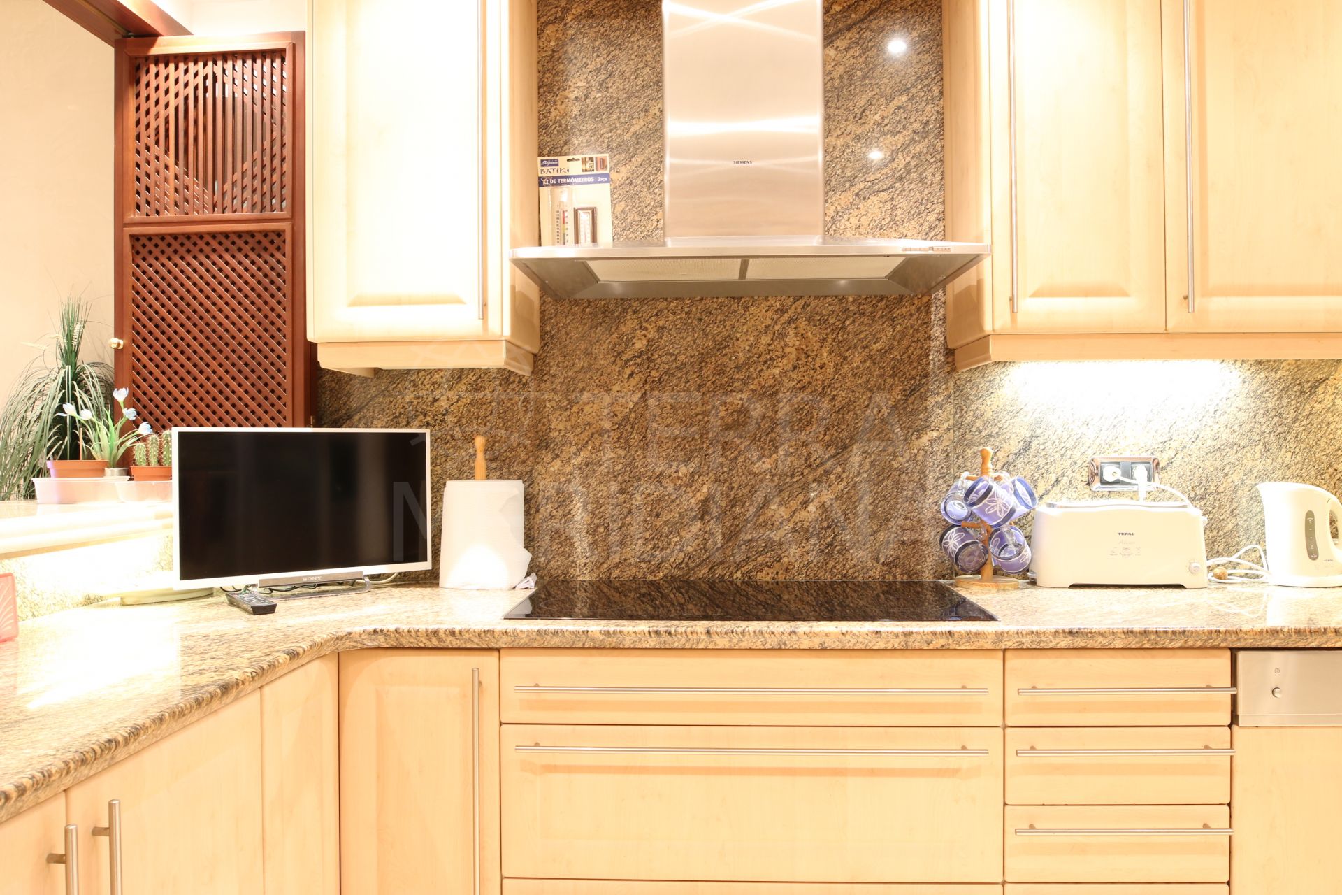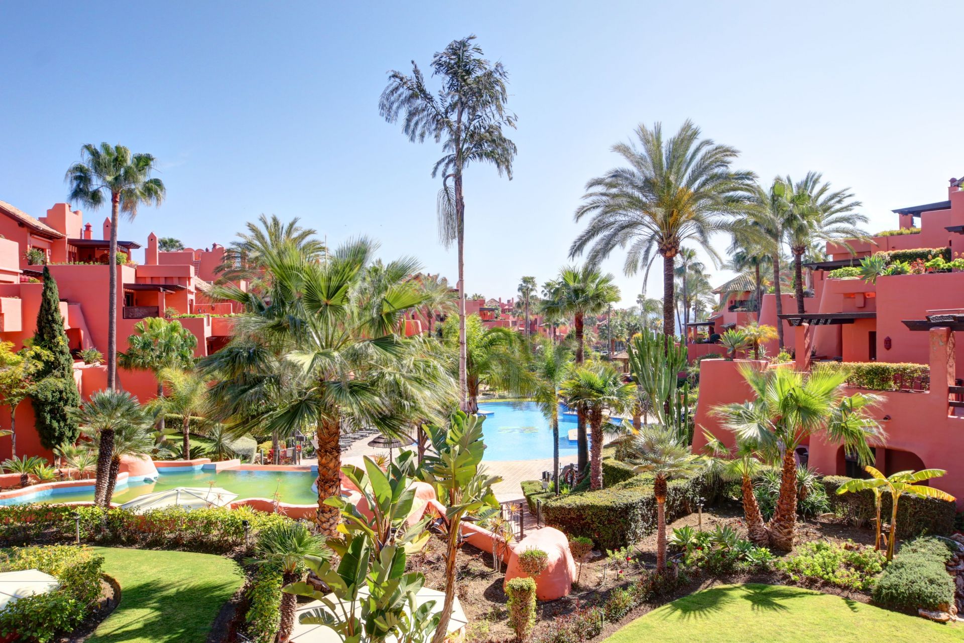 This very well-maintained first-floor apartment is located in the exclusive Torre Bermeja development, enjoying direct access to the beach on Estepona’s New Golden Mile and a wealth of amenities within 5 minutes reach. The community includes two outdoor pools of organic shapes and varying depths, an indoor heated pool, saunas, gym, and a restaurant open in high season with a food and drink selection and a social club for residents. There is 24-hour security and concierge service, CCTV monitoring throughout the complex, and extremely well maintained gorgeous tropical gardens.