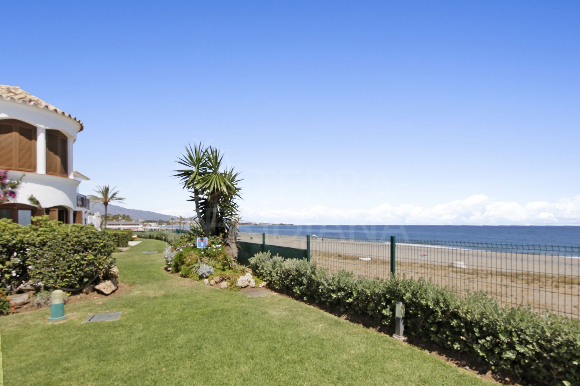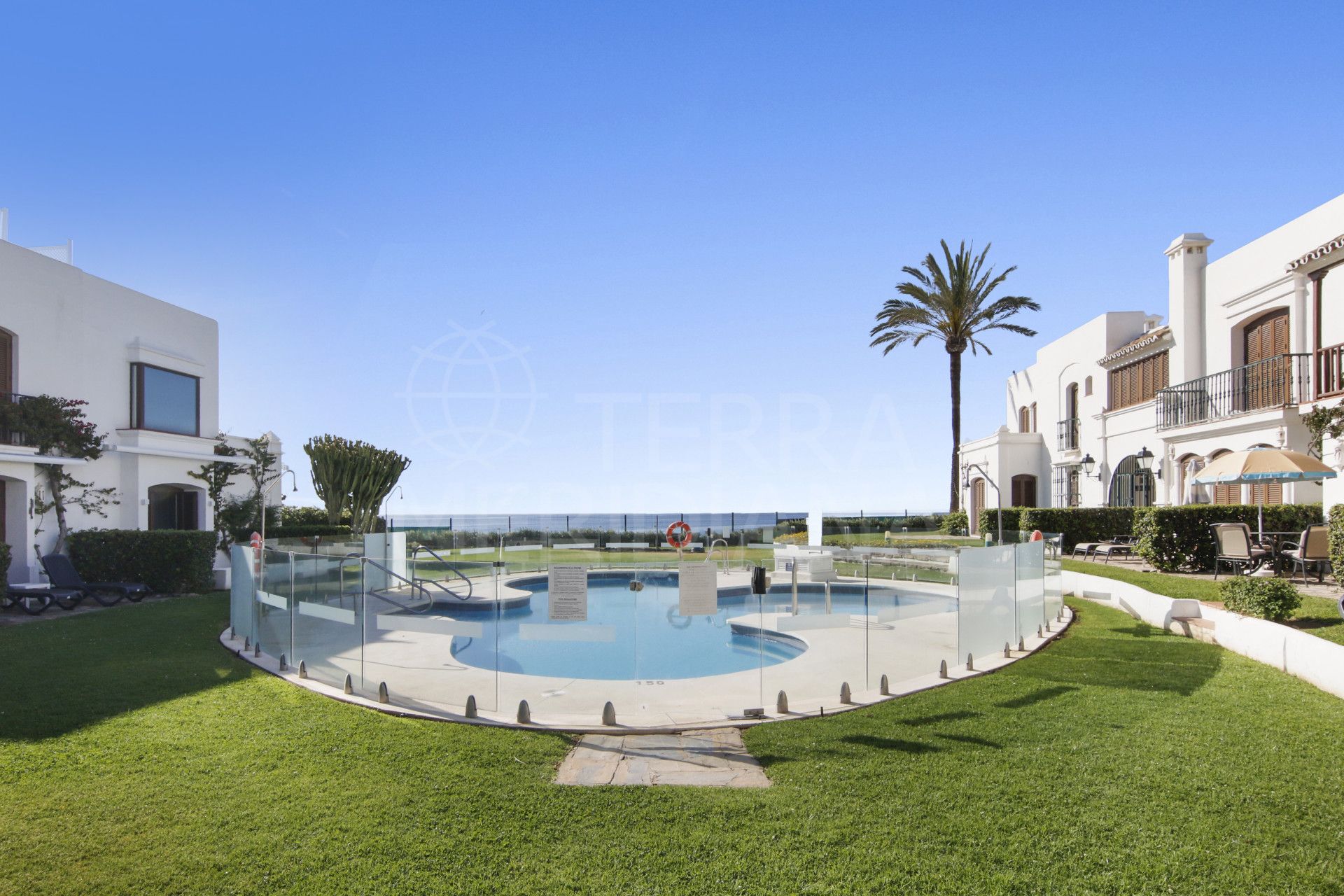 Located within one of the Costa del Sol’s most sought-after beachfront gated communities, this beautifully presented townhouse perfectly combines seaside serenity with modern convenience. Situated in the heart of Villacana, just steps from the beach, this two-bedroom home stands out for its pristine condition, ideal orientation, and prime access to both Estepona and Puerto Banús.