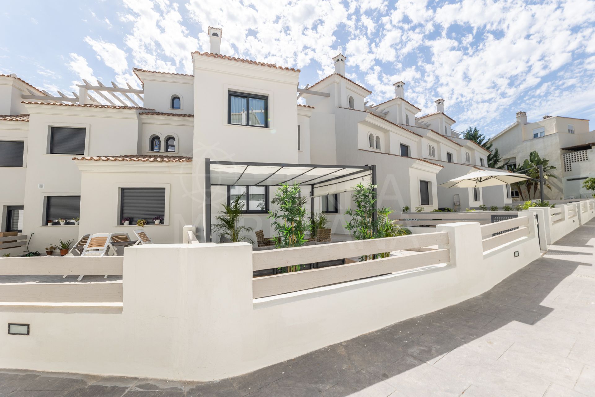 This elegant luxury townhouse is located in Agra Residencial, a sought after area of Estepona Este, Malaga, which combines privacy, security and proximity to a wide range of services and attractions. With a built area of 178 m2, of which 138 m2 correspond to the interior and 40 m2 to private terraces, the property offers a sophisticated and comfortable lifestyle in a privileged enclave, close to golf courses, beaches, schools, shops and leisure areas.
