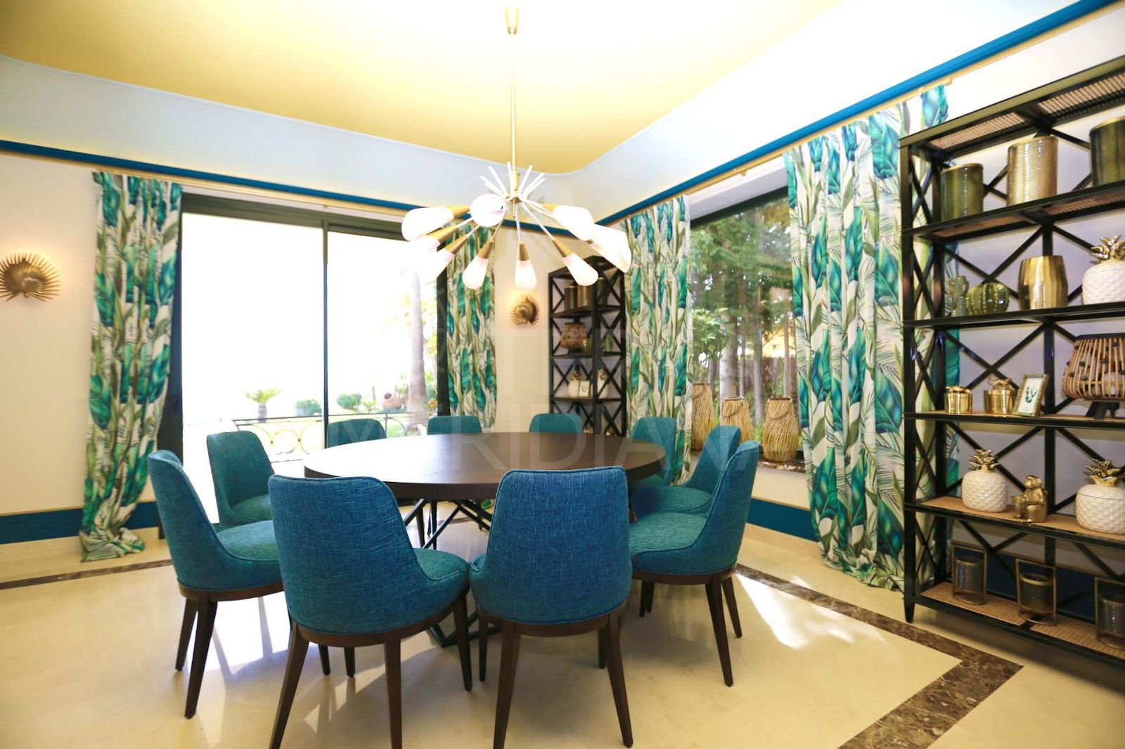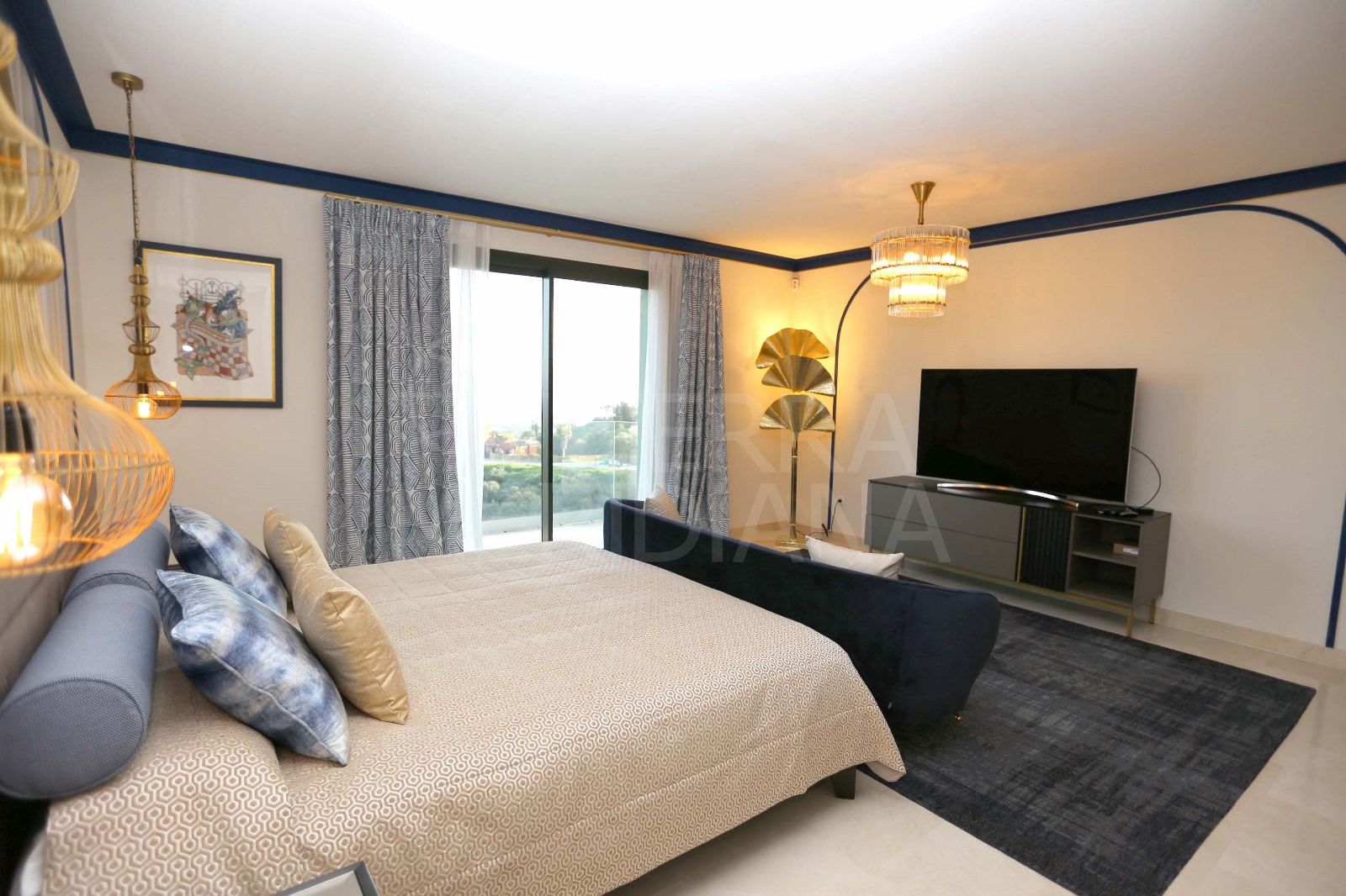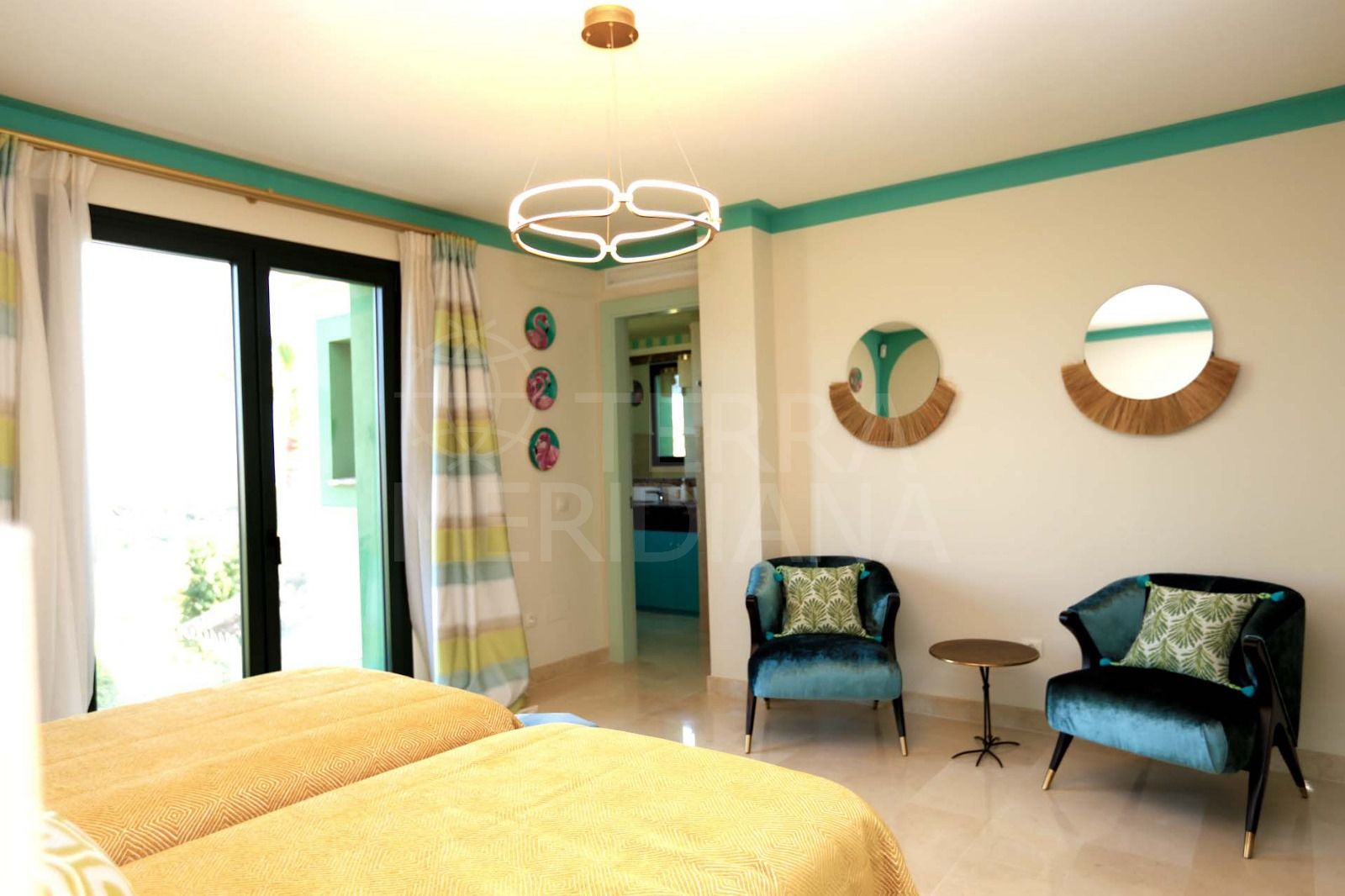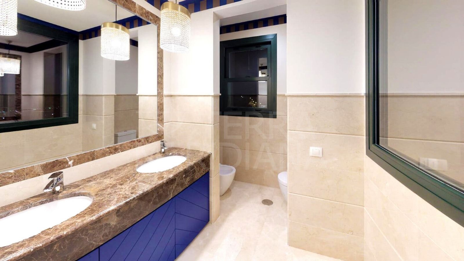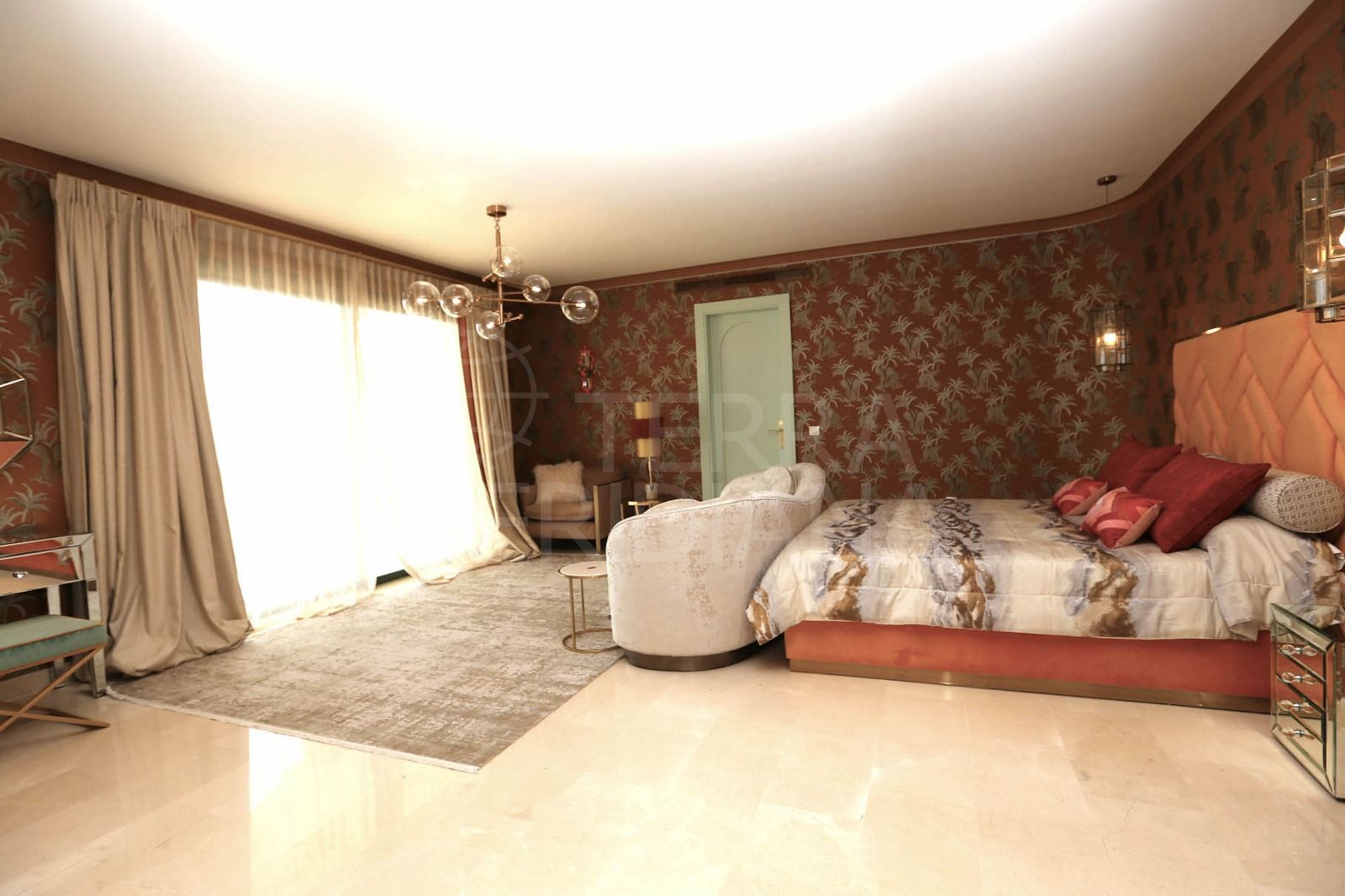 This outstanding luxury villa is situated in the prestigious enclave of Selwo, Estepona East, Estepona, Malaga. Set within a gated community and benefitting from 24-hour security service, this remarkable residence combines contemporary elegance with sophisticated functionality, offering unrivalled levels of comfort and convenience. Spanning an impressive built area of 931m² on a generous 2,004m² plot, the property boasts five spacious bedrooms, each with en-suite bathrooms, as well as two additional toilets for guests and visitors.