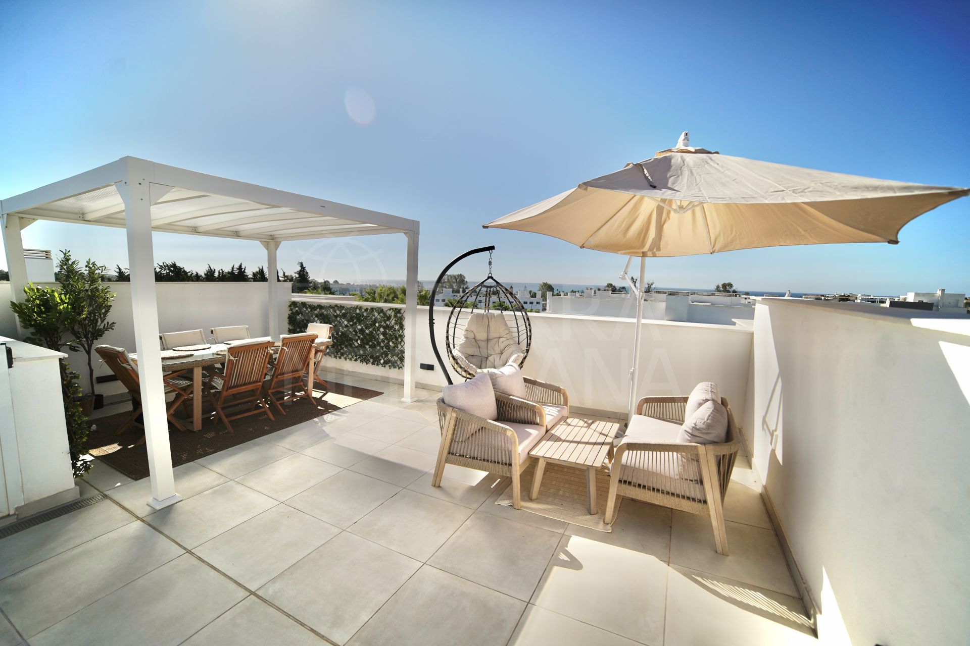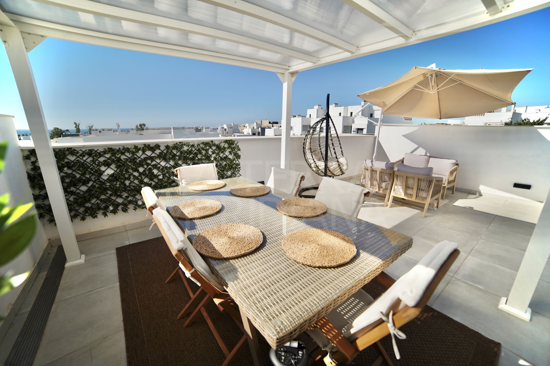 This townhouse in Los Miradores del Sol, Bel-Air Estepona, is one of the very best units in the community, built in 2022 and presented in excellent condition with high-quality materials throughout. It offers a smart layout and generously sized bedrooms.