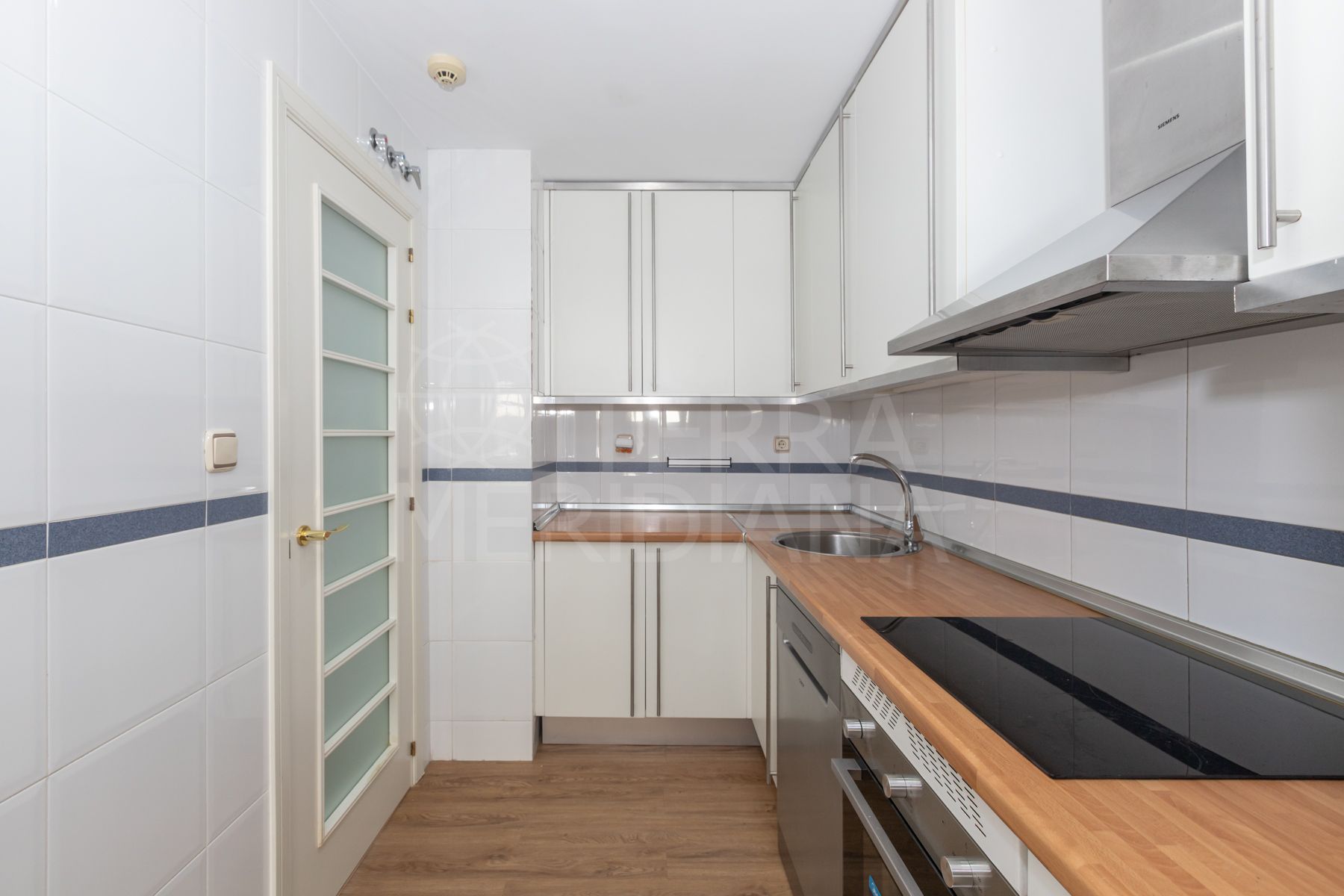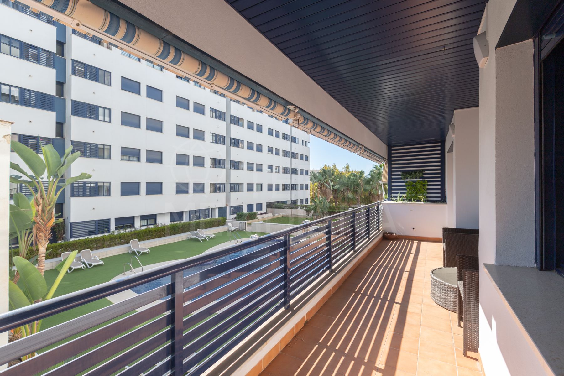 This is a 119 m2 apartment, plus a large southeast-facing terrace close to the marina. The home is distributed through a reception hall into 3 bedrooms with built-in wardrobes, 2 bathrooms (one in suite), a separate kitchen with a utility room, and a living-dining room with access to the terrace. It also has central air conditioning, distributing heat and cold throughout all rooms and appliances, all brand new. A parking space and storage room are included in the price.